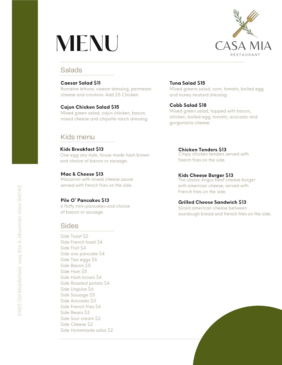 The extensive menu, combined with warm, attentive service in a cozy atmosphere, makes Casa Mia a must-visit brunch destination. Whether you're there for breakfast or lunch, the vibrant flavors and friendly vibe ensure a memorable meal every time.